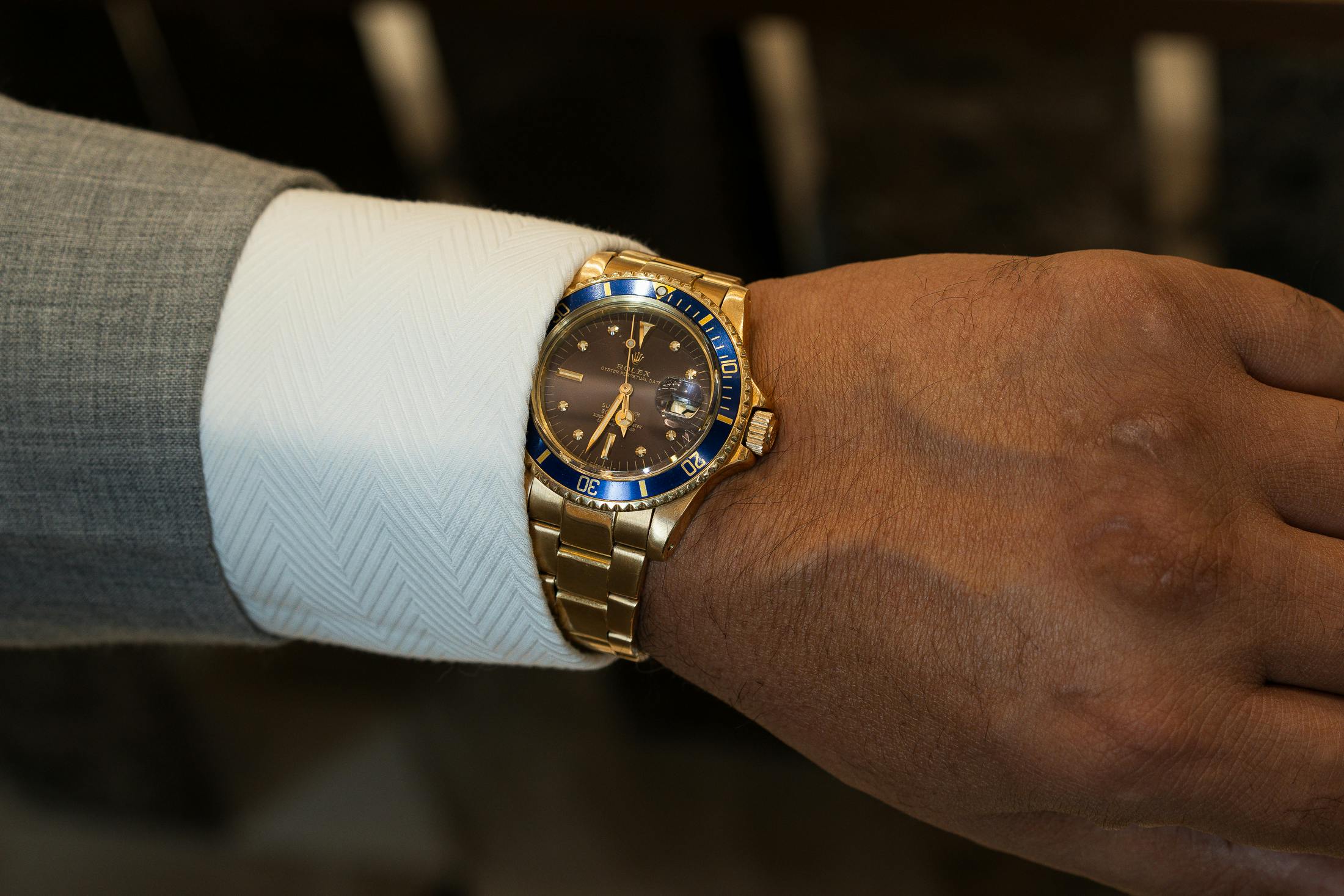 Rolex Submariner from 1977 with a blue dial that's tropicalized to purple.