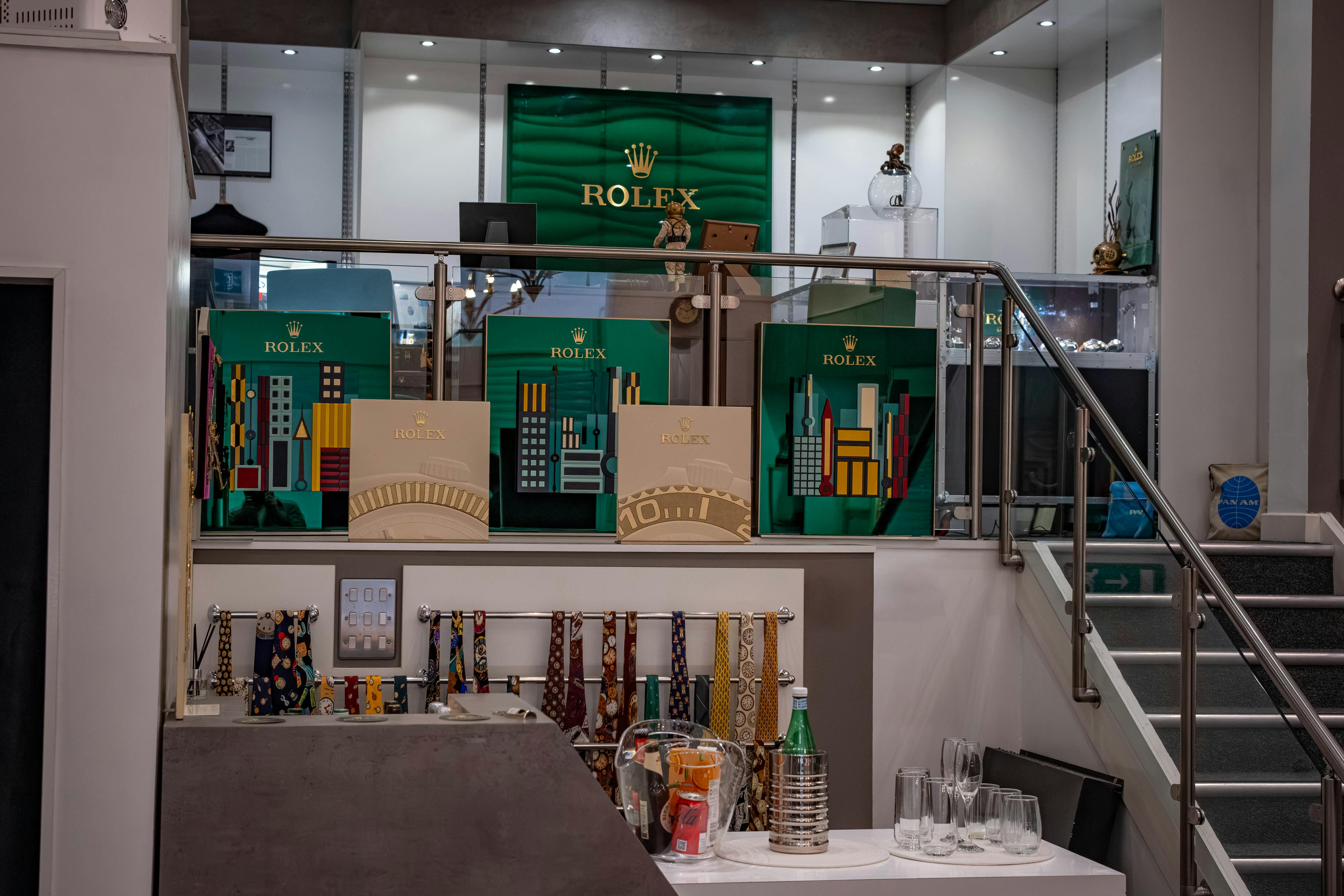 A prime spot to overlook the exhibition from this Submariner-filled desk (more on this later).