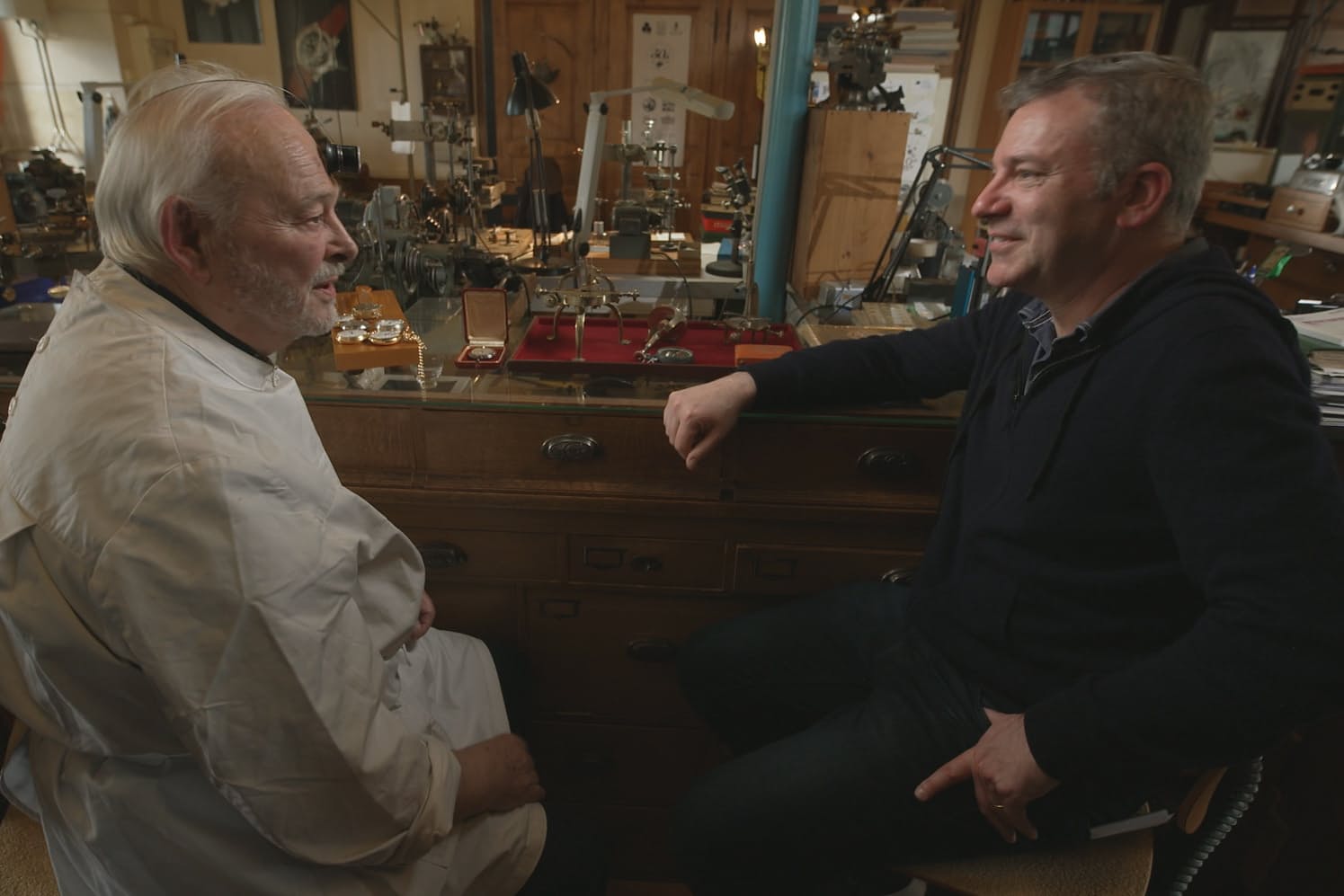Philippe Dufour (left) and Jon Wertheim (right). Courtesy of CBS News / 60 MINUTES