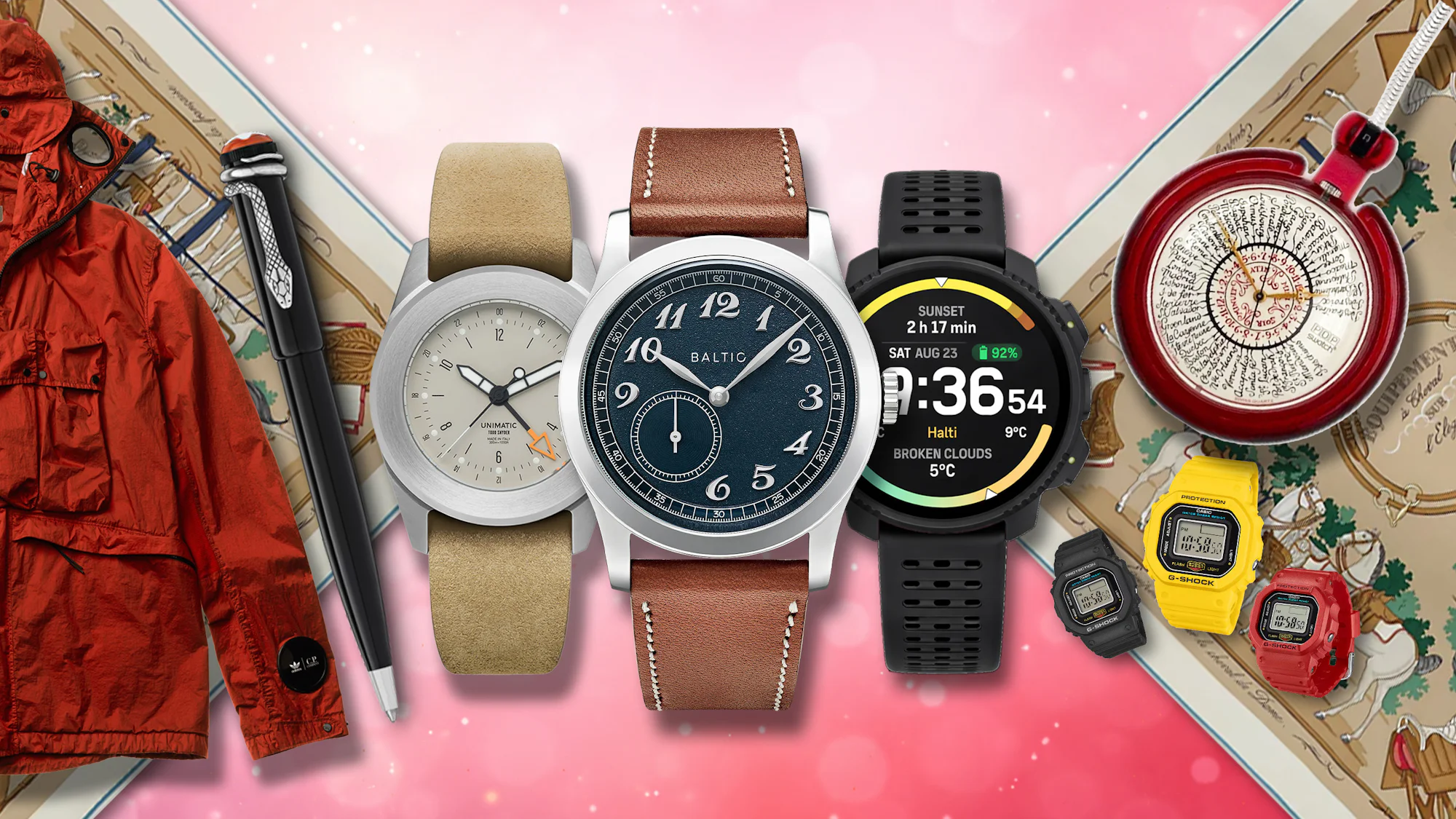 James has never met a Mojave-colored tool watch he didn't at least consider bringing home, which made this an easy choice. I briefly considered adding two or three more Citizen Aqualand variants to James's already growing pile—purely for the bit—but at some point the joke starts to look a little too much like enabling, and I didn't want to be the one who pushed the collection from "impressive" to "we should talk." There's a fine line between thoughtful gifting and accidentally funding a one-man Aqualand reserve, so I decided it was safer for everyone (and his watch box) to show restraint. Instead, this Todd Snyder x Unimatic GMT is a friendly diversion—still firmly in the tool-watch universe he loves, but swapping the dive-computer energy for something that feels a bit more "airport-to-dinner reservation" coded than "descent-timer ready."